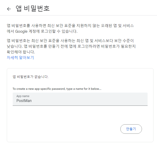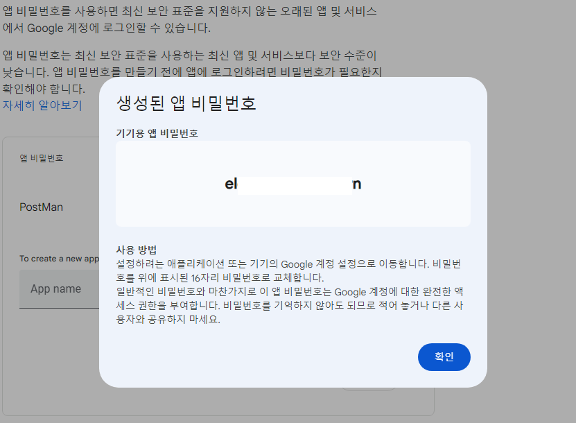 앱 비밀번호가 나오게 된다.