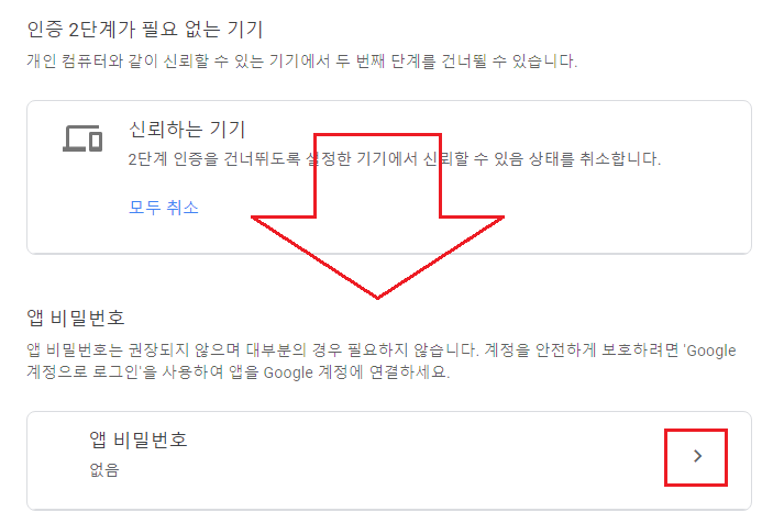 더 아래로 내려가 앱 비밀번호 탭을 누르자.