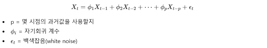 - p = AR 차수 (과거 값 몇 개를 쓰는지)