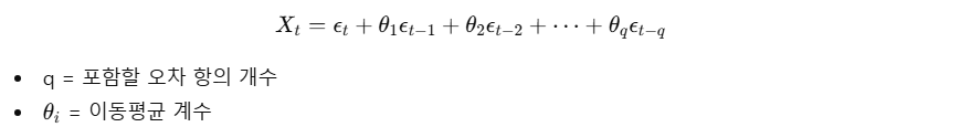 - 현재값이 과거 오차(쇼크, 충격)의 선형결합으로 표현되는 모델