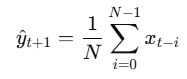 - 가장 최근 N개의 관측값을 단순 평균하여 다음 값을 예측하는 방법 (예측값 = (3일 전 + 2일 전 + 1일 전) / 3)
