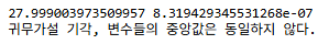 else : print("귀무가설 채택, 변수들의 평균은 동일하다.")