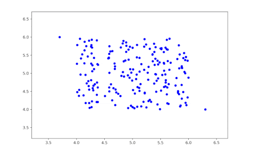 - 밀도가 균일한 데이터에서 부정확 지역 밀도 차이가 없다면 LOF 점수도 1 근처에 모임