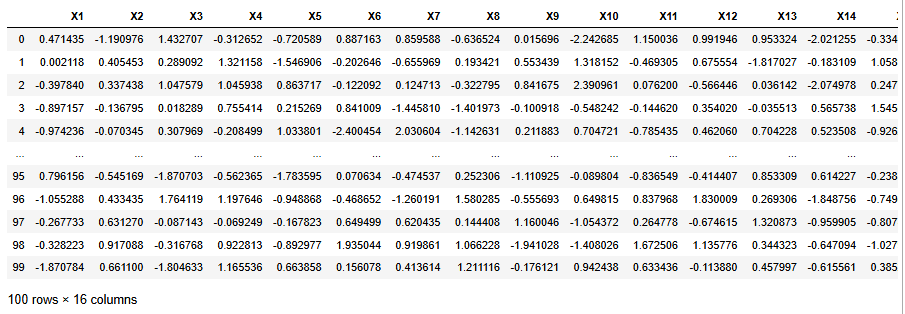y = X[cols_3_multiple].dot(weights) + np.random.randn(100) * 0.5 # 약간의 노이즈 추가