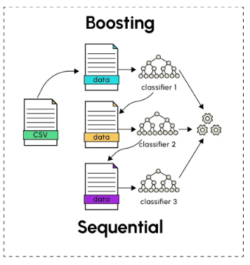 - 여러 개의 약한 학습기를 순차적으로 학습시켜 강한 학습기로 만드는 앙상블 방법