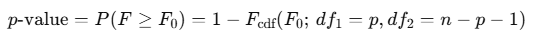에 대해 검정통계량은 다음과 같다. (n: 예측 데이터의 수, p : 입력 변수의 수)