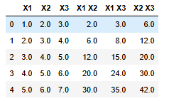 df_poly = pd.DataFrame(X_poly, columns=poly.get_feature_names(['X1', 'X2', 'X3']))