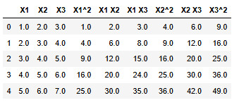 # Index(['X1', 'X2', 'X3', 'X1^2', 'X1_X2', 'X1_X3', 'X2^2', 'X2_X3', 'X3^2'], dtype='object')