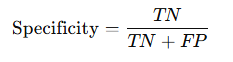 특이도 - 실제 Negative 중 올바르게 예측한 비율 (TNR)