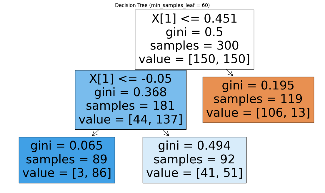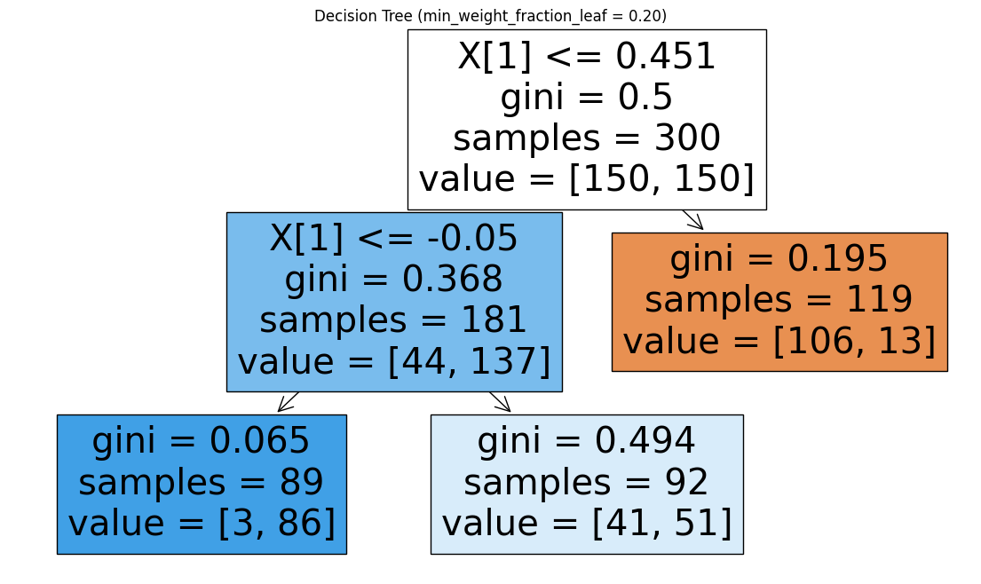 plt.title("Decision Tree (min_weight_fraction_leaf = 0.20)")