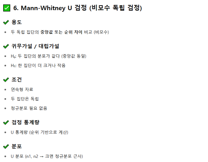 - 독립성 : 두 지반의 데이터는 서로 독립적이어야 하고, 한 집단의 값이 다른 집단 값에 영향을 주면 안된다.