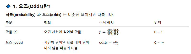 술 X → 오즈 = 0.10 / (1 - 0.1) ≈ 0.111