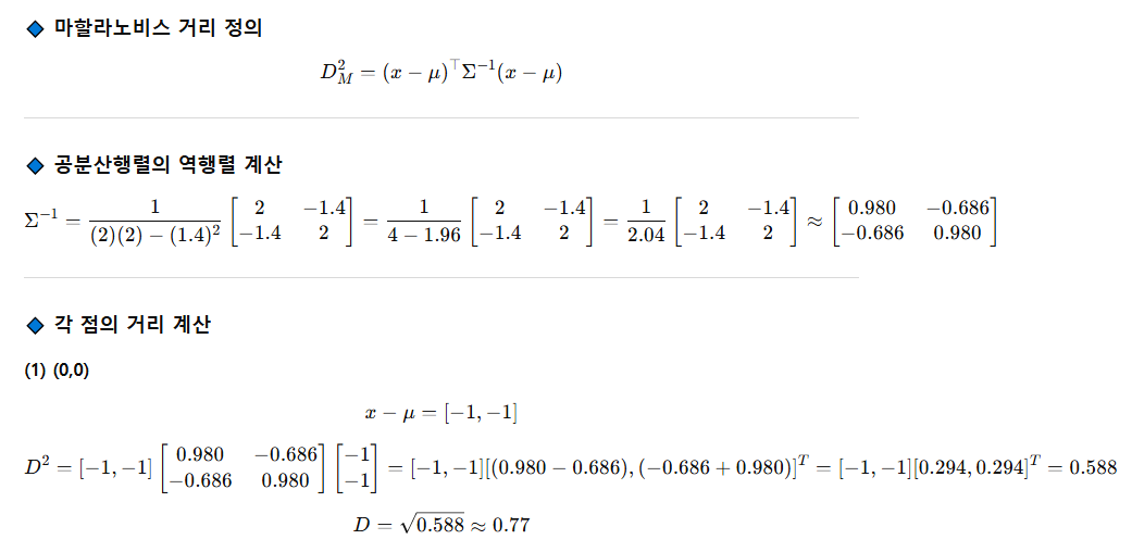 print(f"{label}: Mahalanobis 거리 = {dist:.4f}")