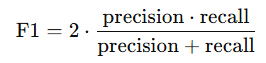 f1_uw = f1_score(y_true, y_pred, average='binary', pos_label=1) # 가중치 없는 경우