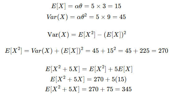 감마 분포에서 α = 5, θ = 3일 때, 다음을 구하라.
