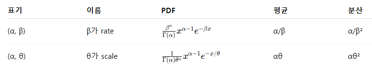 감마 분포의 경우 θ = 1 / β로 사용할 수 있다. (β = rate, θ = scale)