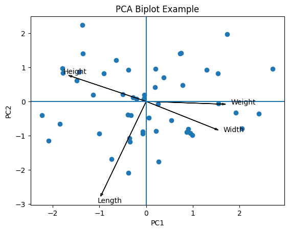- PC1, PC2 공간에서 데이터가 어떻게 분포하는지 보여줌