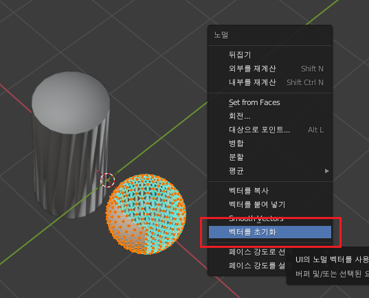 원기둥도 마찬가지로 벡터를 초기화하면 아래와 같이 보인다.