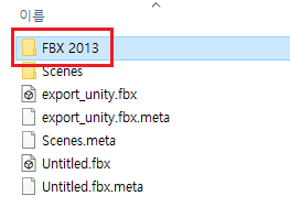 그러면 해당 경로에 아래의 폴더가 만들어지고 fbx 파일이 생성된다.