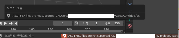 그러나 ASCII FBX는 열 수 없다는 에러가 발생한다.