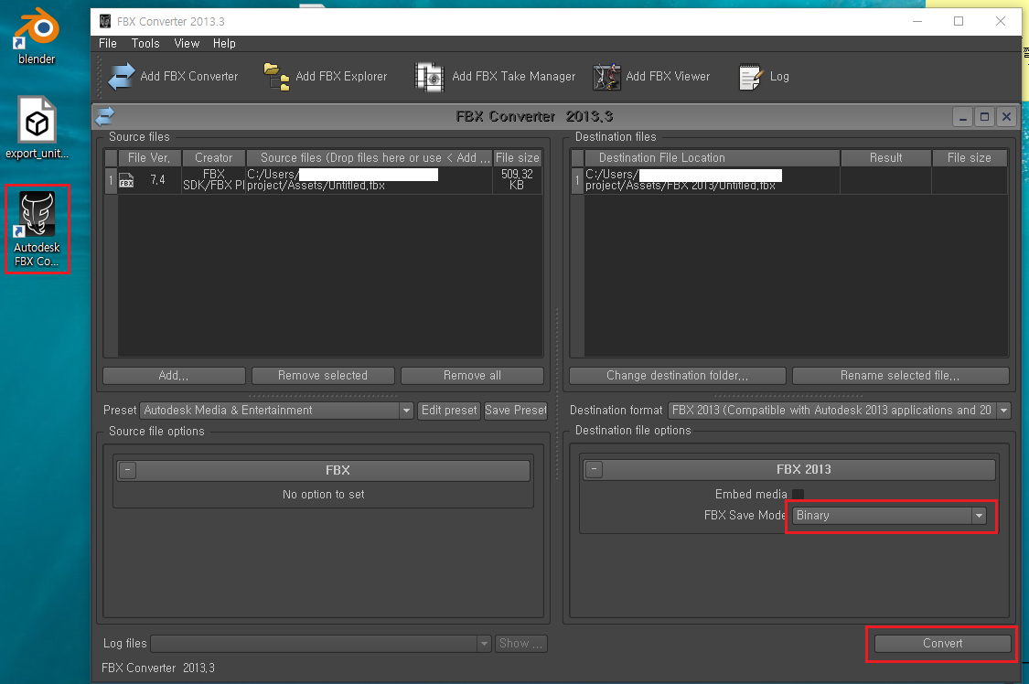 설치가 완료되면 파일을 드래그하여 Binary를 선택한 후 Convert 버튼을 누른다.