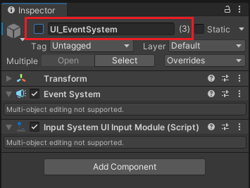 UI_EventSystem은 각 씬의 1개만 남겨두도록 한다. (모두 꺼도 된다.)