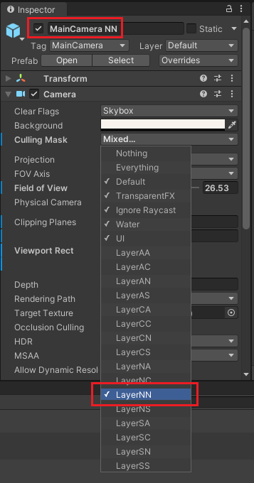 MainCamera NN은 16개의 Layer 중 Layer NN만 본다.