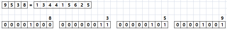 char[4] 9, 5, 3, 8이 34105로 표현이 가능해진다.